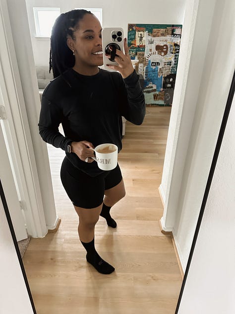 With a schedule like that I’ve fallen into wearing a lot of athleisure. It’s comfortable and I can easily hop from my last work task of the day to my workout. I thought I’d get dressed on the weekends since I don’t during the week, but I quickly let the athleisure bleed in to every single day. I didn’t feel motivated or see the point in putting together a look just to meander down grocery store aisles or to run to Target.